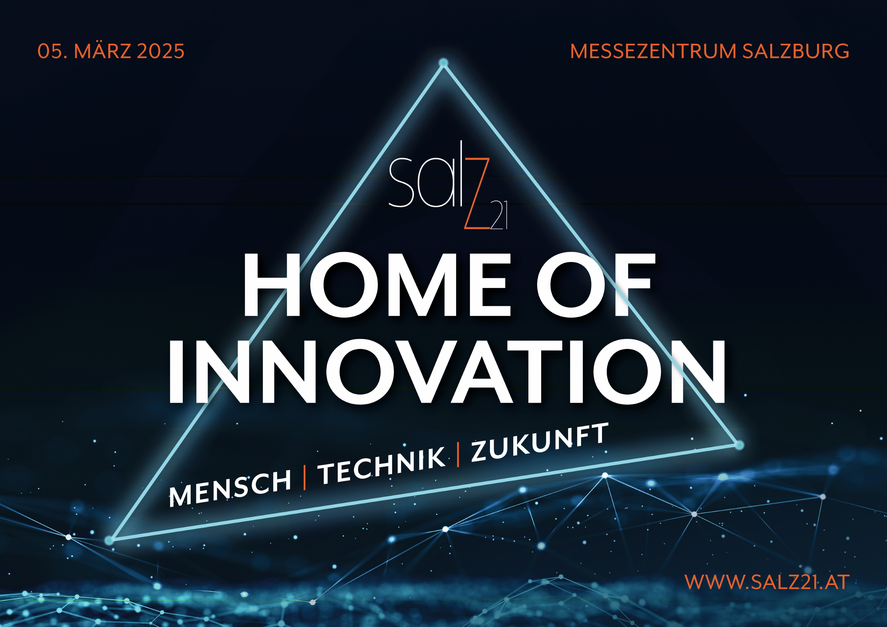 Am 05. März 2025 steht das Messezentrum Salzburg bereits zum 5. Mal wieder ganz im Zeichen von Mensch, Technik und Zukunft, wenn die renommierte Innovationskonferenz salz21 ihre Tore öffnet. Dieses Technologie- und Innovationsforum bietet eine einzigartige Gelegenheit, die Zukunft unseres Wirtschaftsraumes zu erleben, zu gestalten und die wichtigsten Fragen unserer Zeit zu diskutieren.